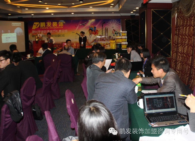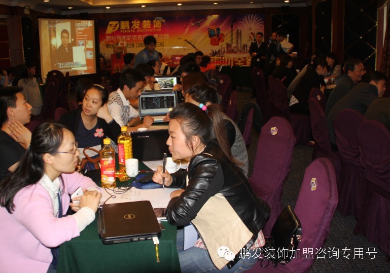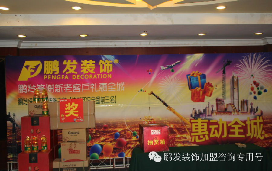 5月2日下午13:00--18:00鹏发装饰郑州公司在郑州中州国际饭店举行了钜惠全城最低折扣现场的大型优惠活动,集团董事长拿出重金回馈新老客户,只要来现场的客户就送一套高档家私用品,活动当天共计来了126位客户,成功收取定金的有33位,确立签单的有2位。 这个数据表示了,业主们对鹏发的信任,对鹏发的支持。鹏发会不负众望,用好的品质好的施工质量,好的售后服务,回报对鹏发支持的业主们。