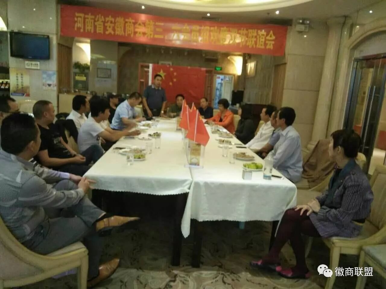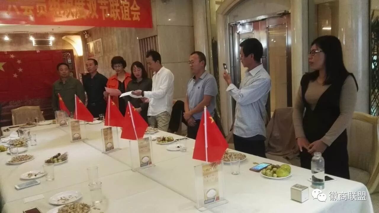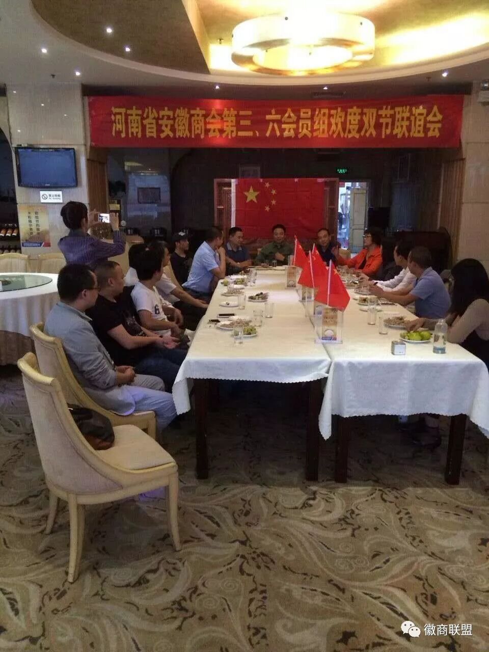 十月一日下午,位于郑州市红专路上的平煤神马集团商务会所一楼大厅内,国旗高挂,欢声笑语,充满欢度佳节的喜庆气氛。河南省安徽商会第三、六组的20余名会员聚在一起,他们面对面,手拉手,感受着亲情、团圆和温馨。执行会长彭井思冒雨赶来,让会员们十分激动,纷纷站起报以热烈的掌声。副会长、第十三会员组组长杨双河,商会副秘书长赵怡敏以及其他组会员黄周庆、郝华明、陈金祥等也兴致勃勃地应邀参加此次联谊活动。